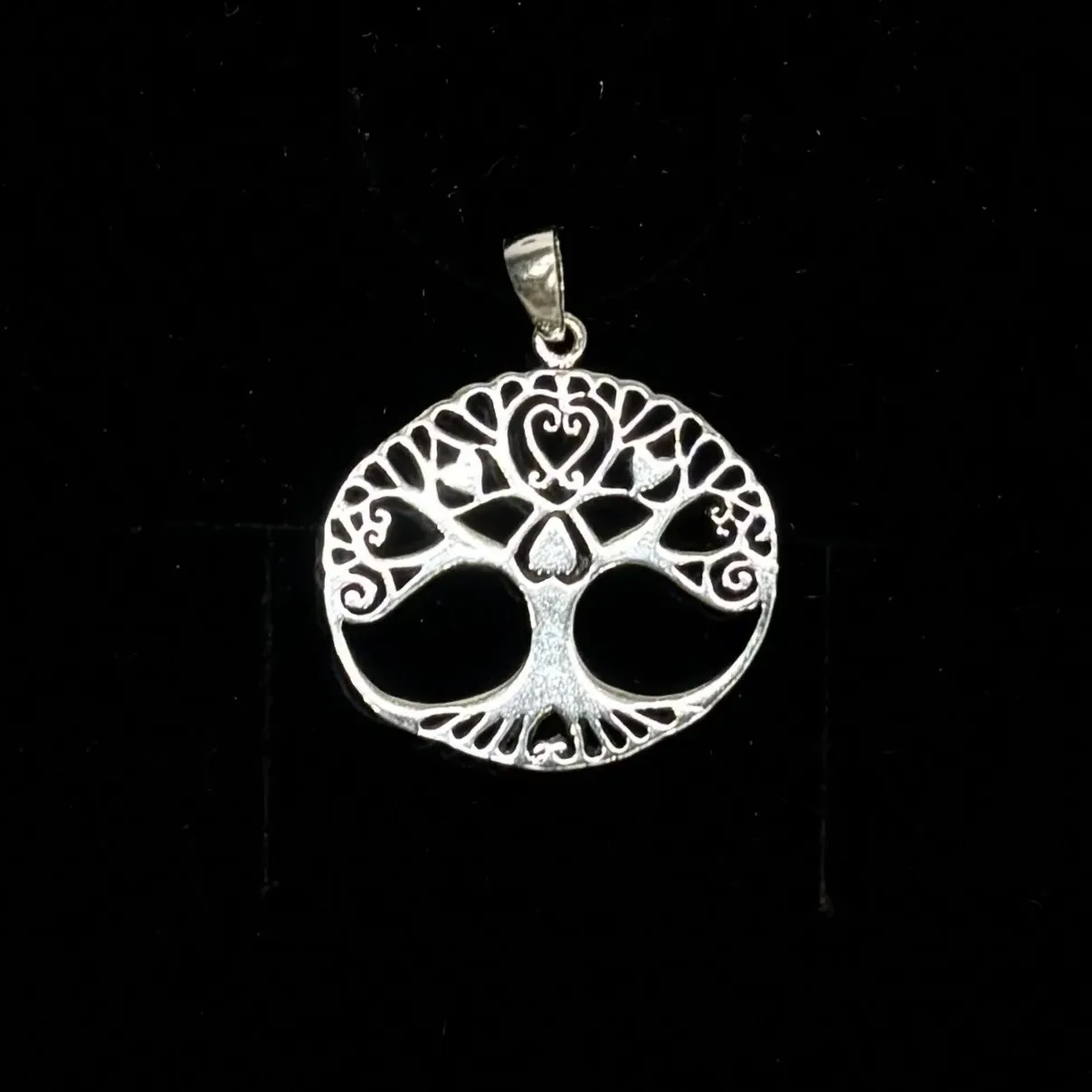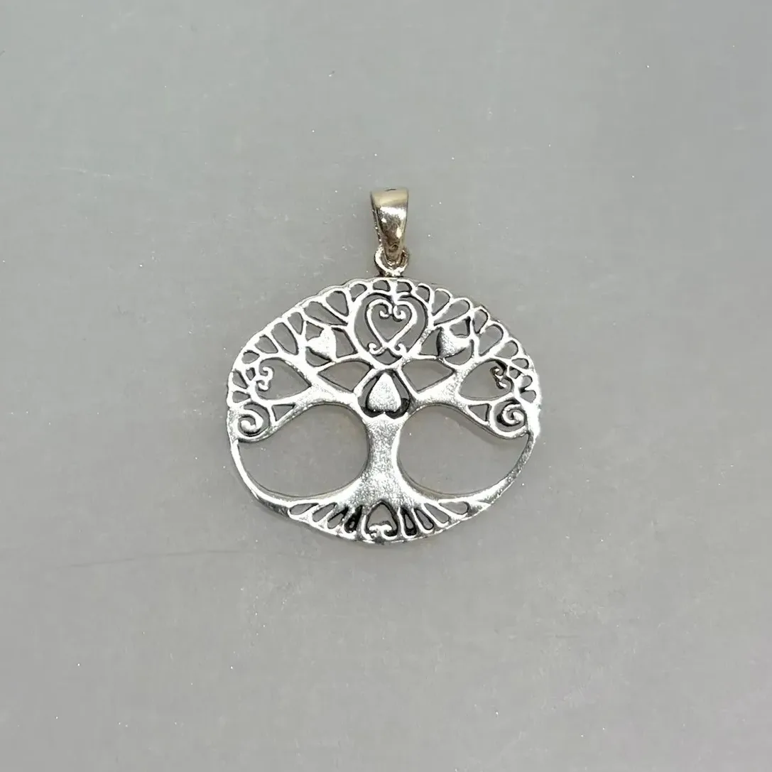 Ovalt vedhæng i sølv med Yggdrasil med smukke hjerte detaljer.