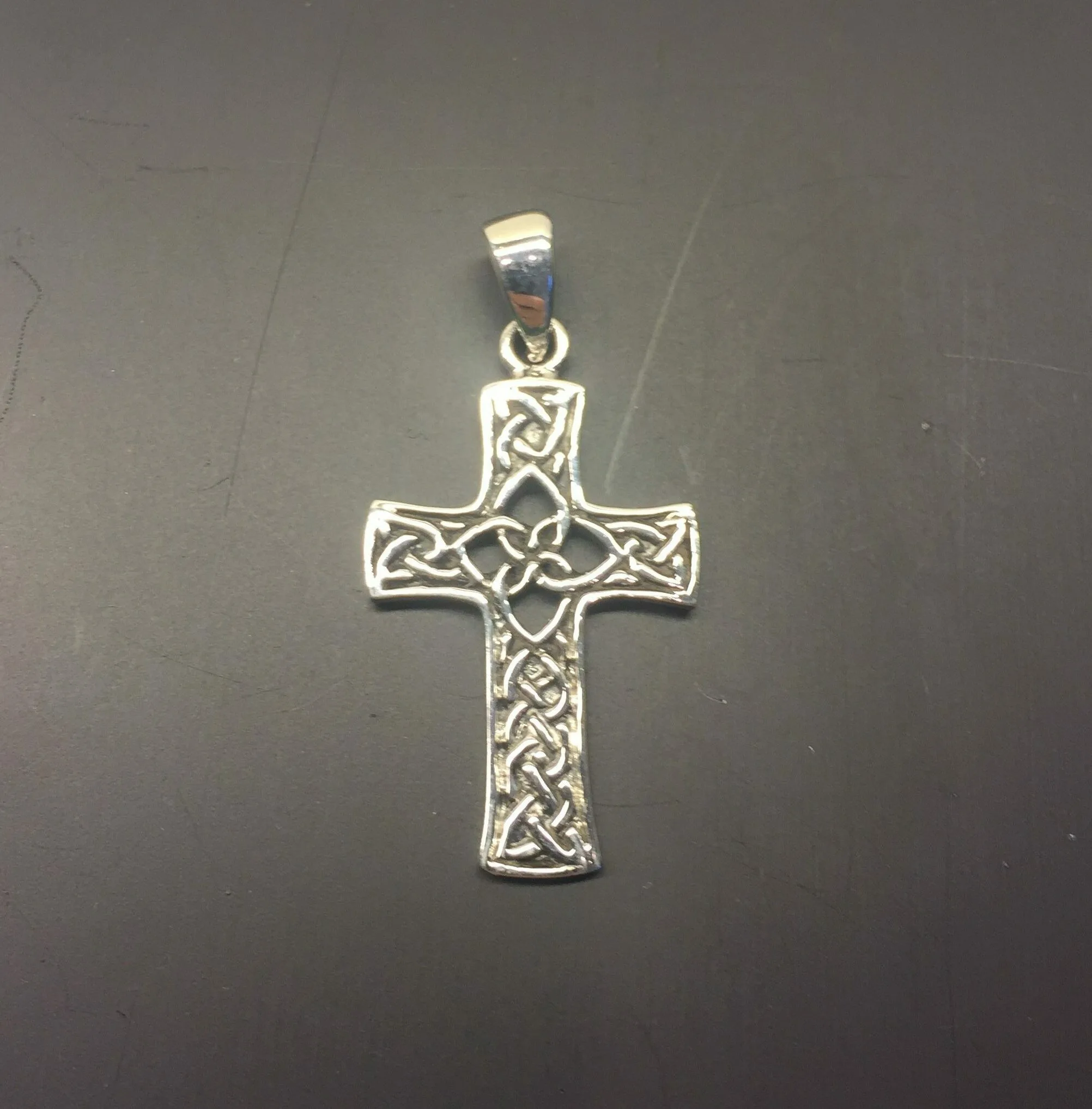 Vedhæng Sølv Kors – Keltisk Aran de 4 Elementer