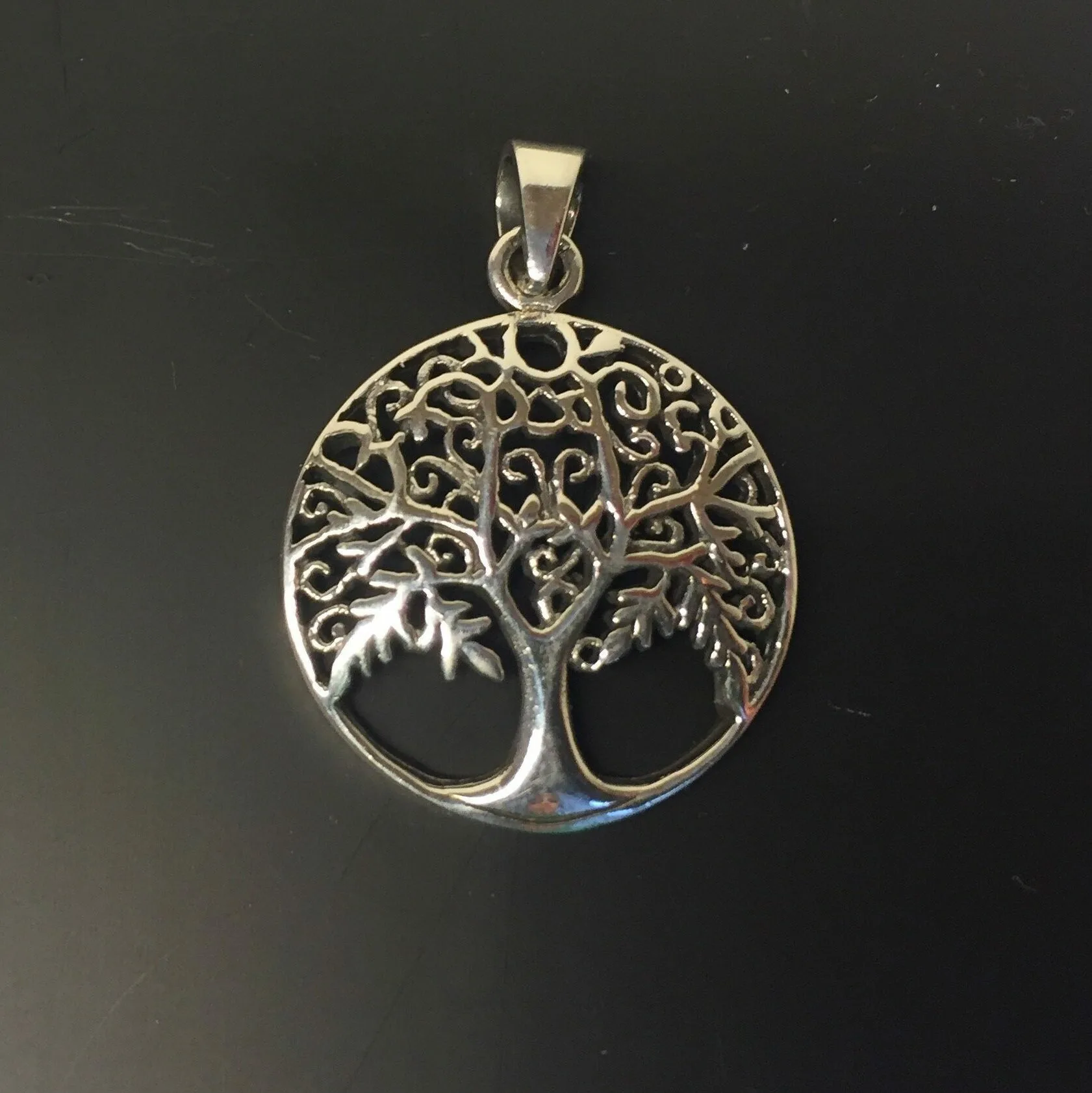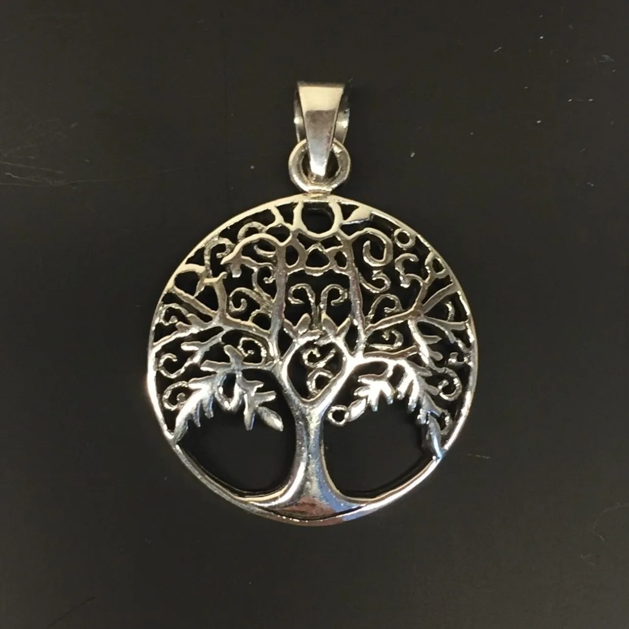 Smukt rundt vedhæng i sølv – Yggdrasil, livstræet.