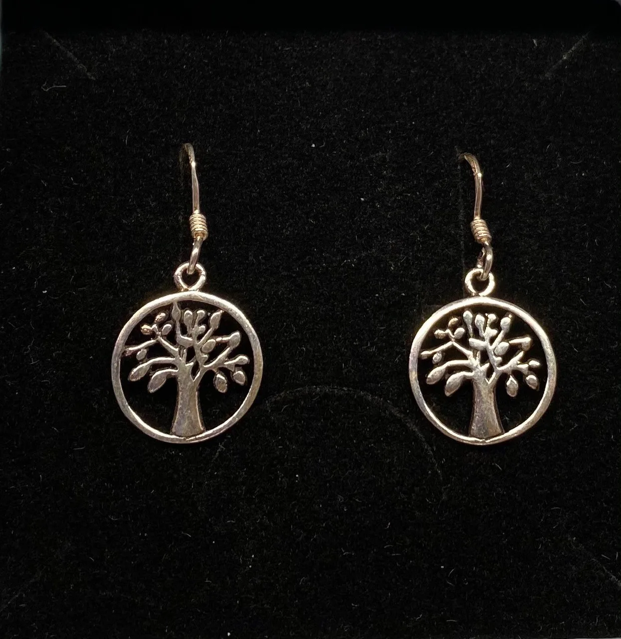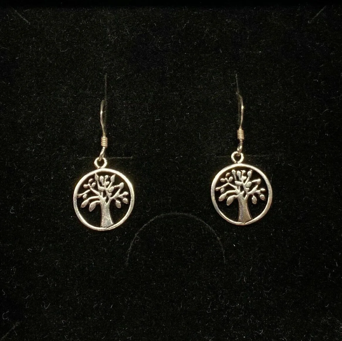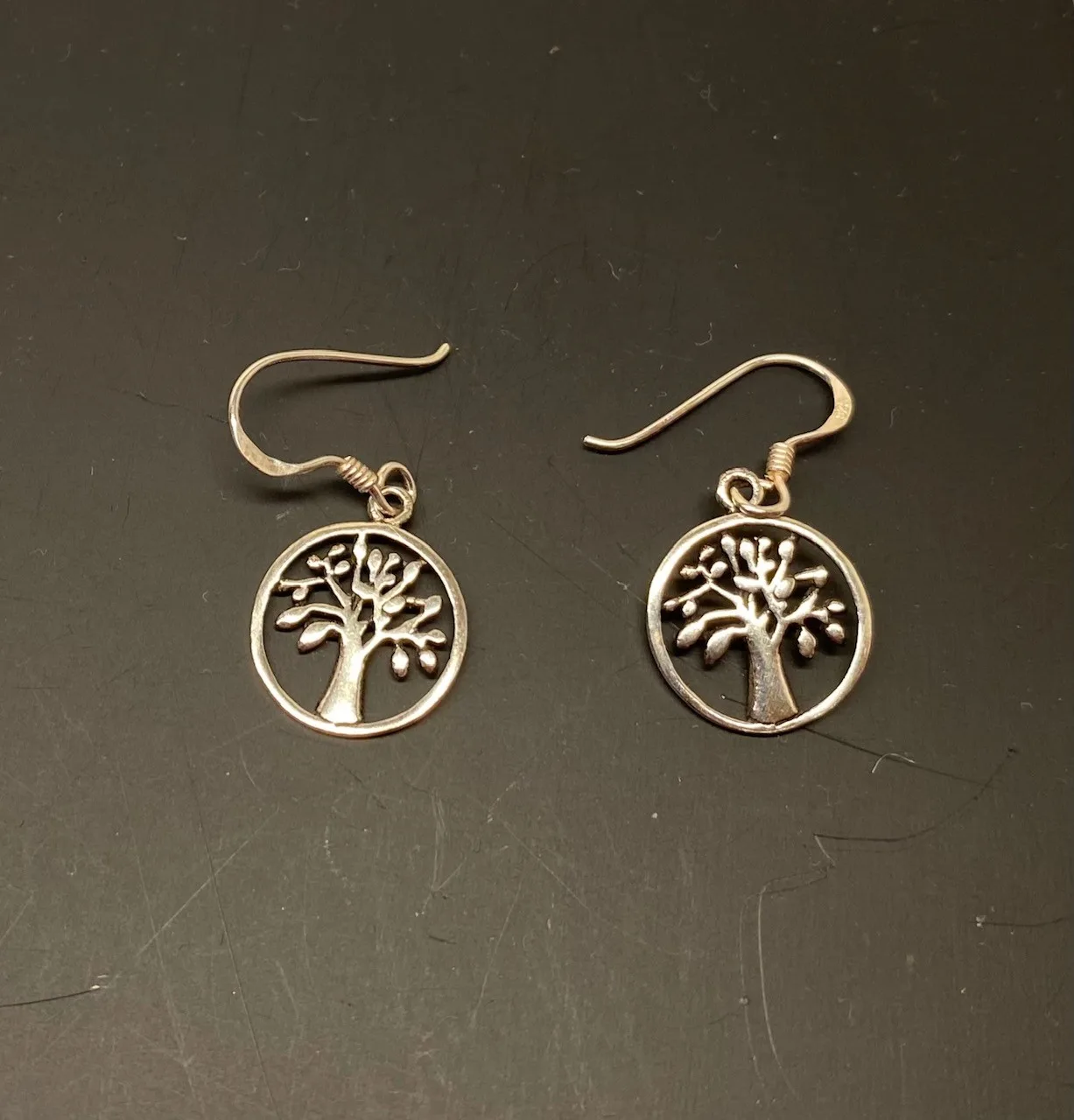 Smukke runde vikingeørehængere i sølv – Yggdrasil, livets træ.