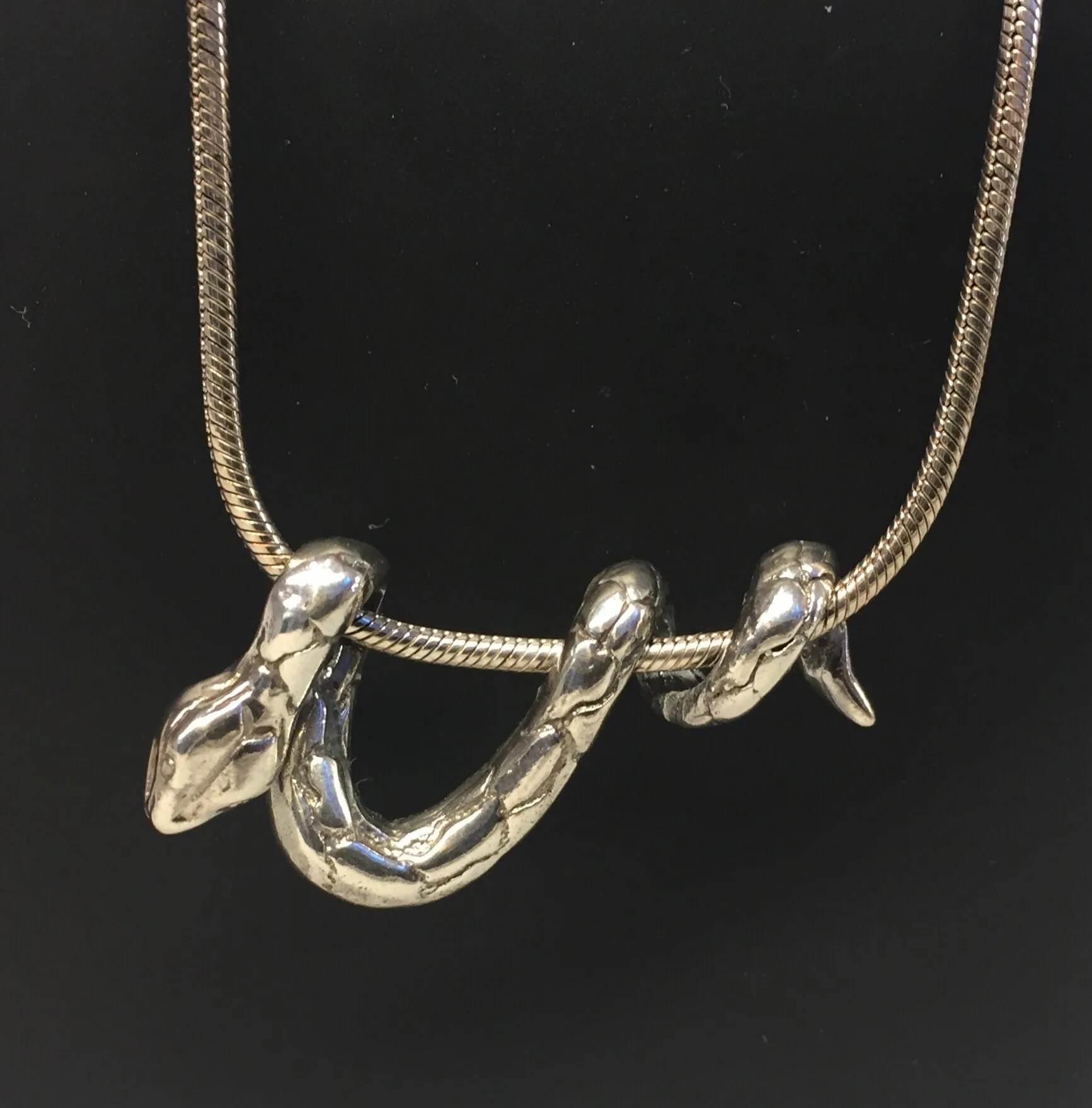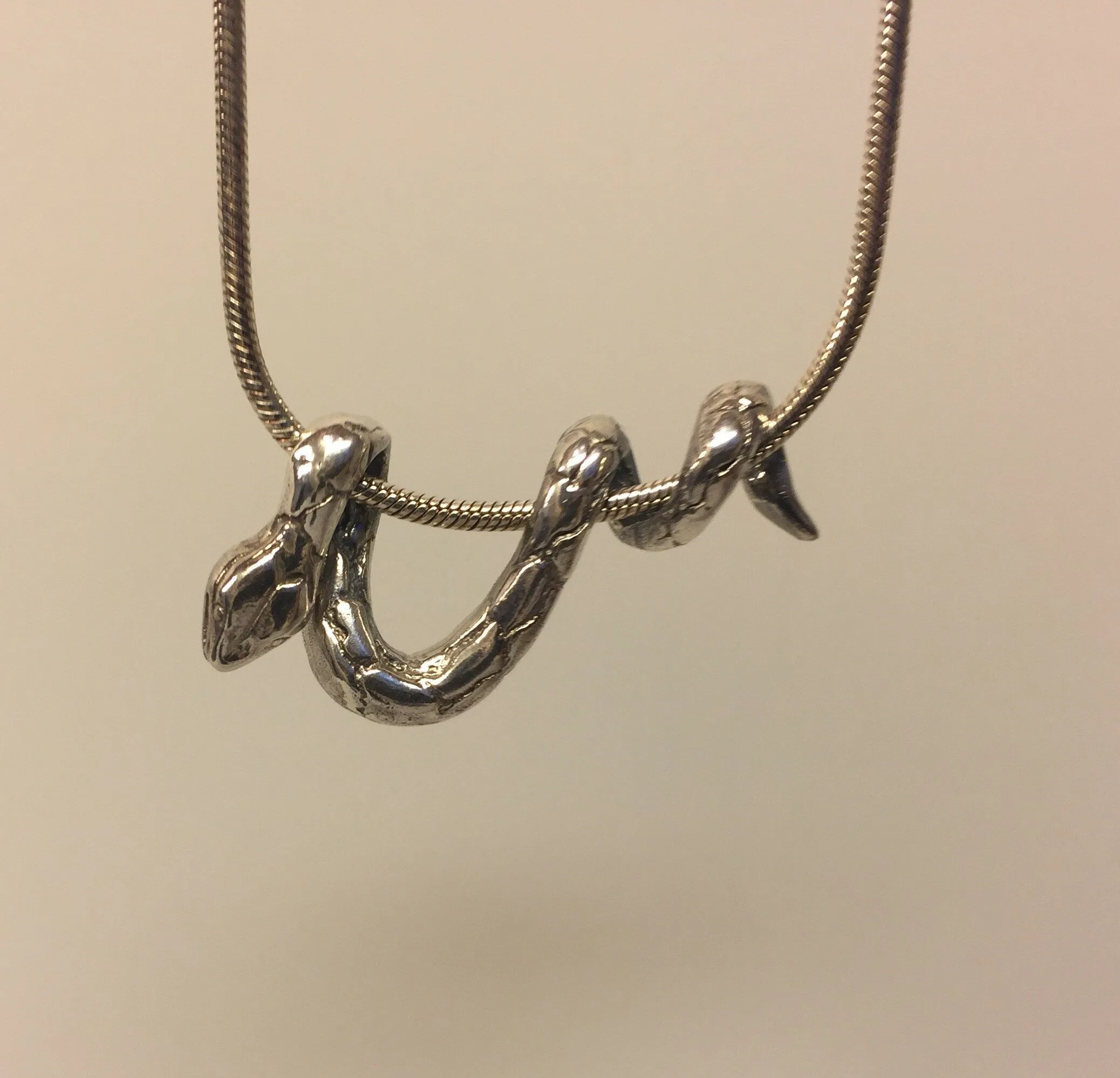 Flot vikingevedhæng i sølv – en slange, der snor sig rundt om kæden og hviler let og elegant.