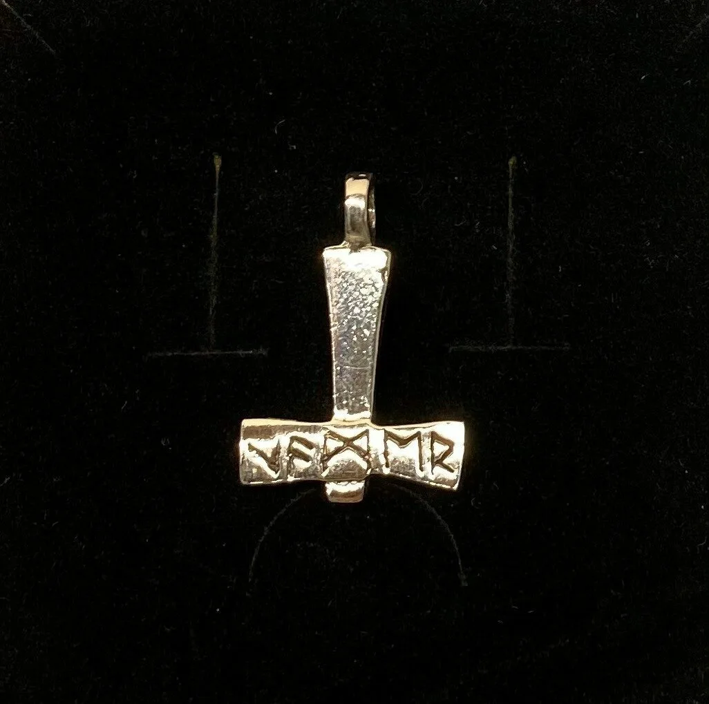 Vikingevedhæng i Sølv – Thorshammer Massiv med Runer