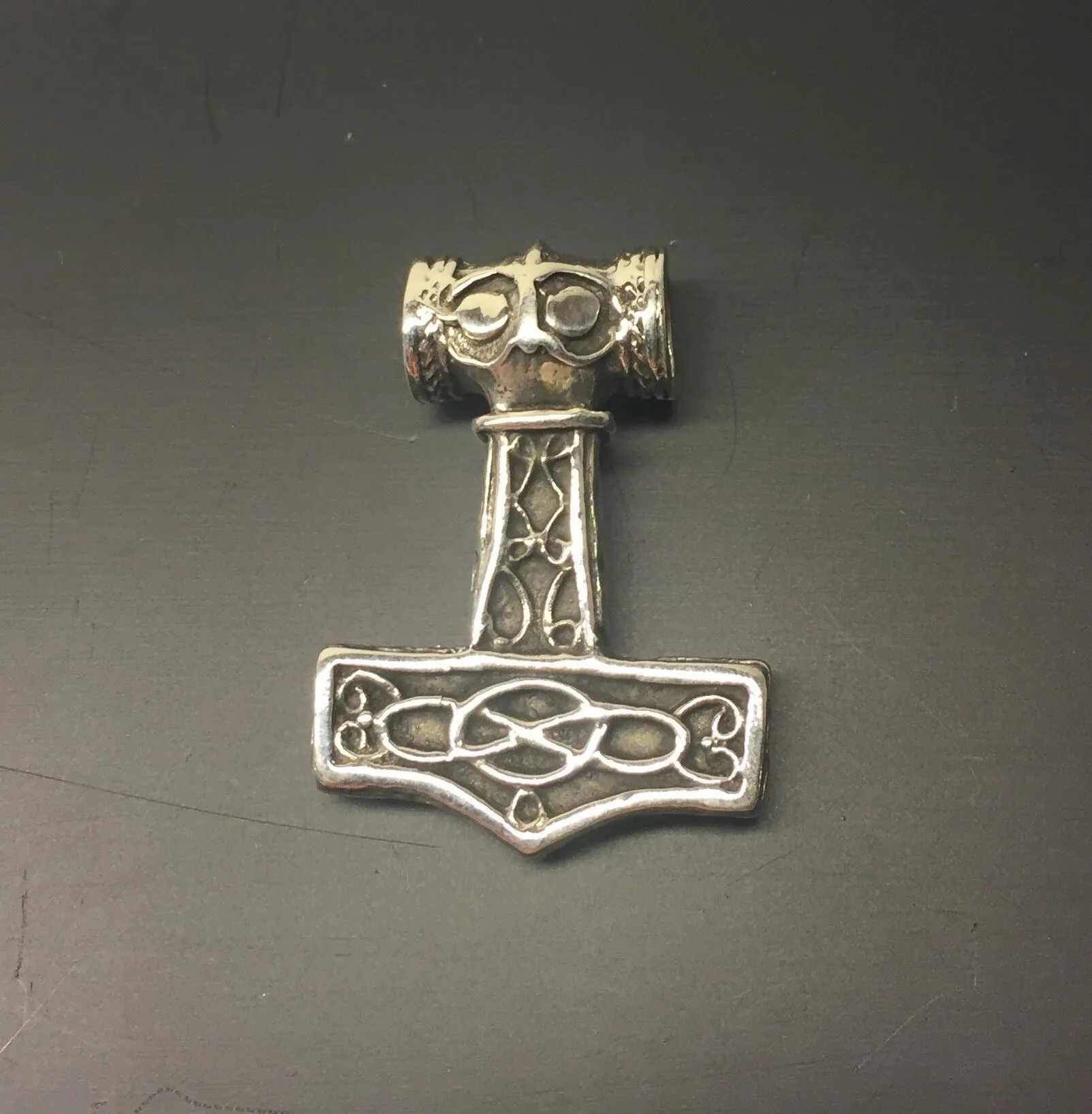Flot kraftigt vikingevedhæng. En lækker Thorshammer i smuk udførelse. Hammeren er tung og massiv i ægte sølv. Vedhænget er dekoreret på alle sider og fint forarbejdet.