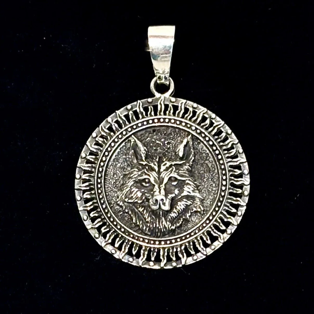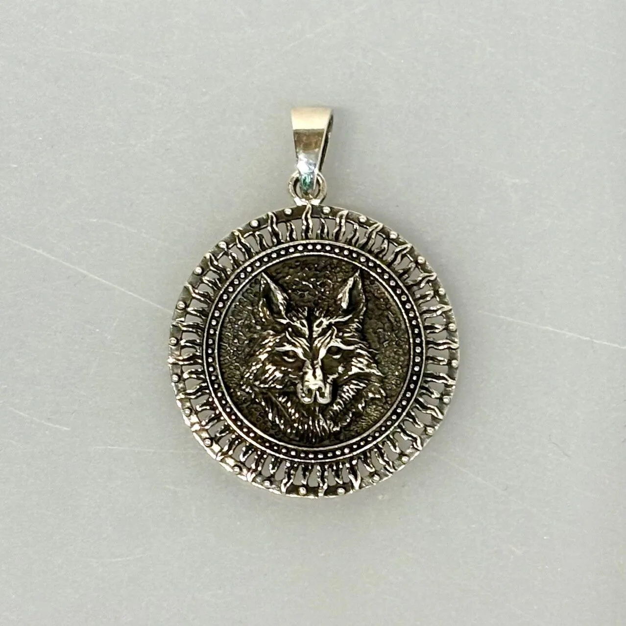 Flot stort sølvvedhæng med et smukt ulvehoved.