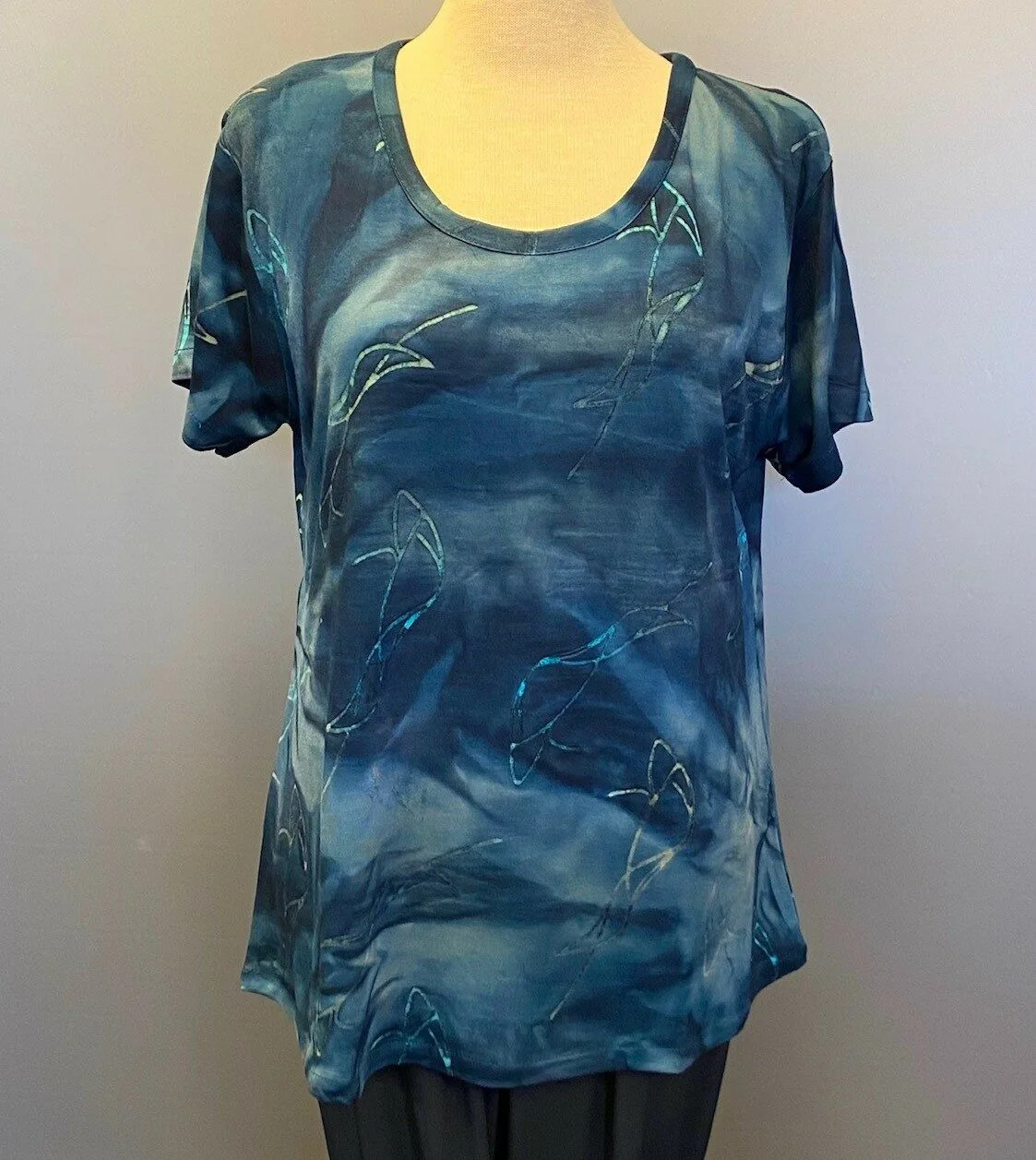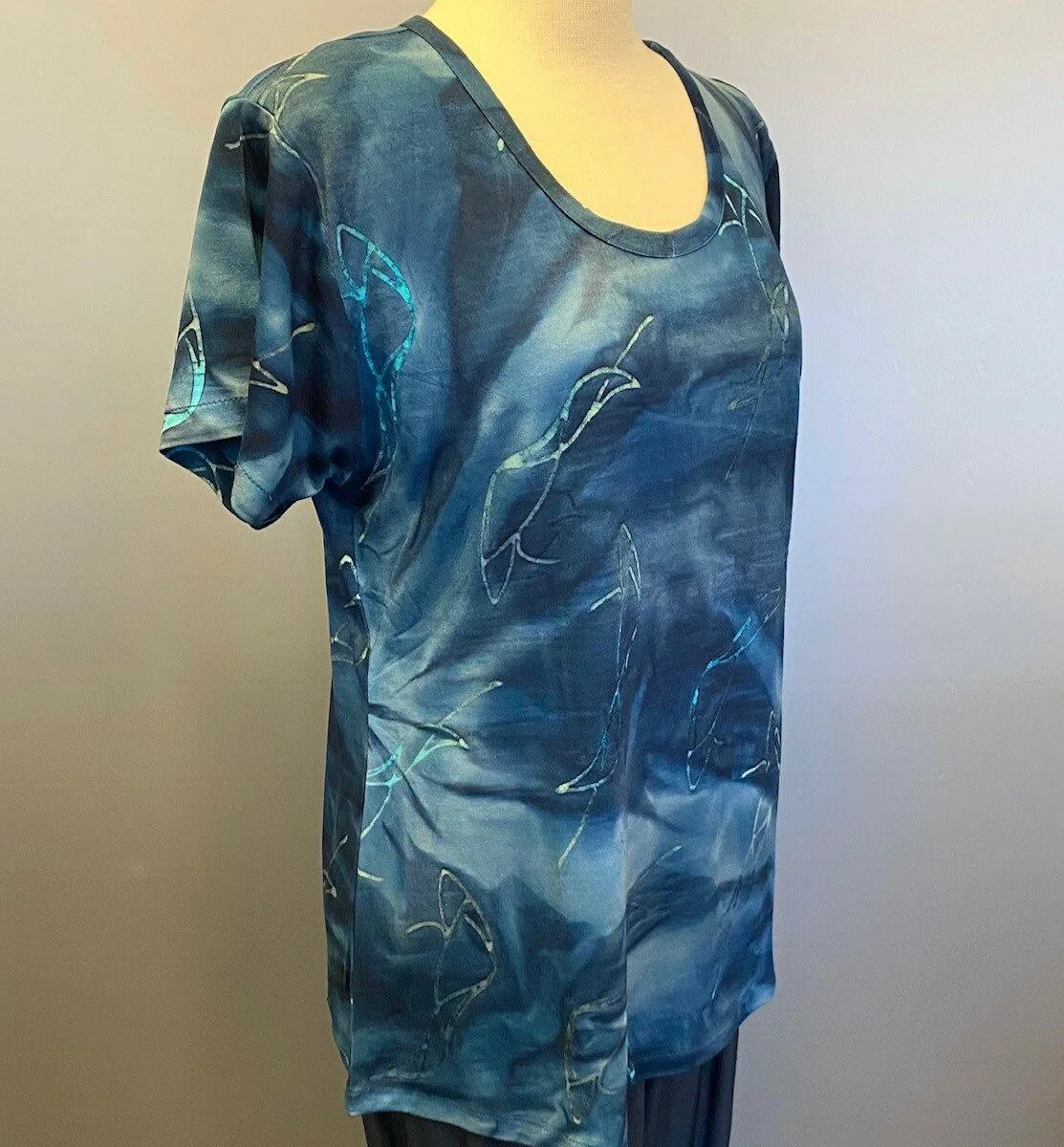 Lækker håndtrykt T-shirt med korte ærmer.
