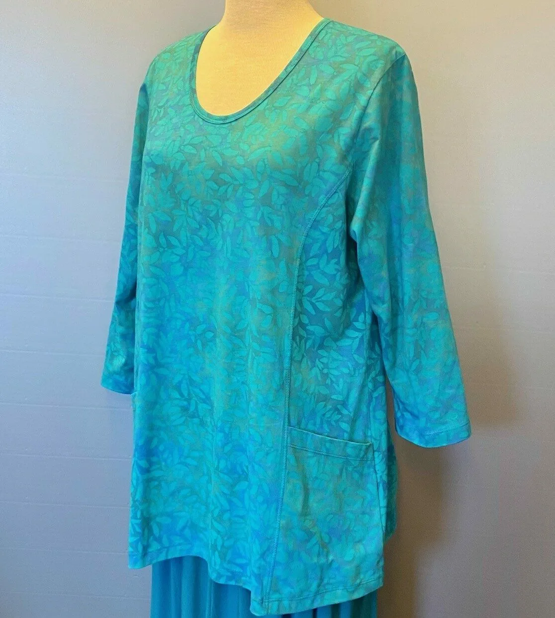 Batikbluse 007 A-facon Bomuld Jersey – Løv Blå Turkis