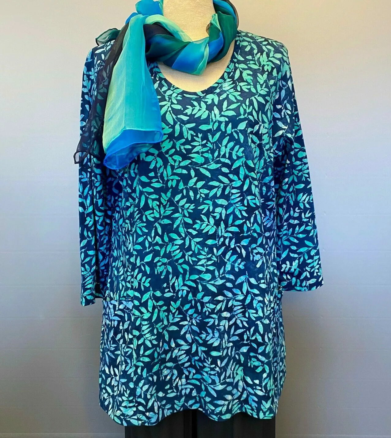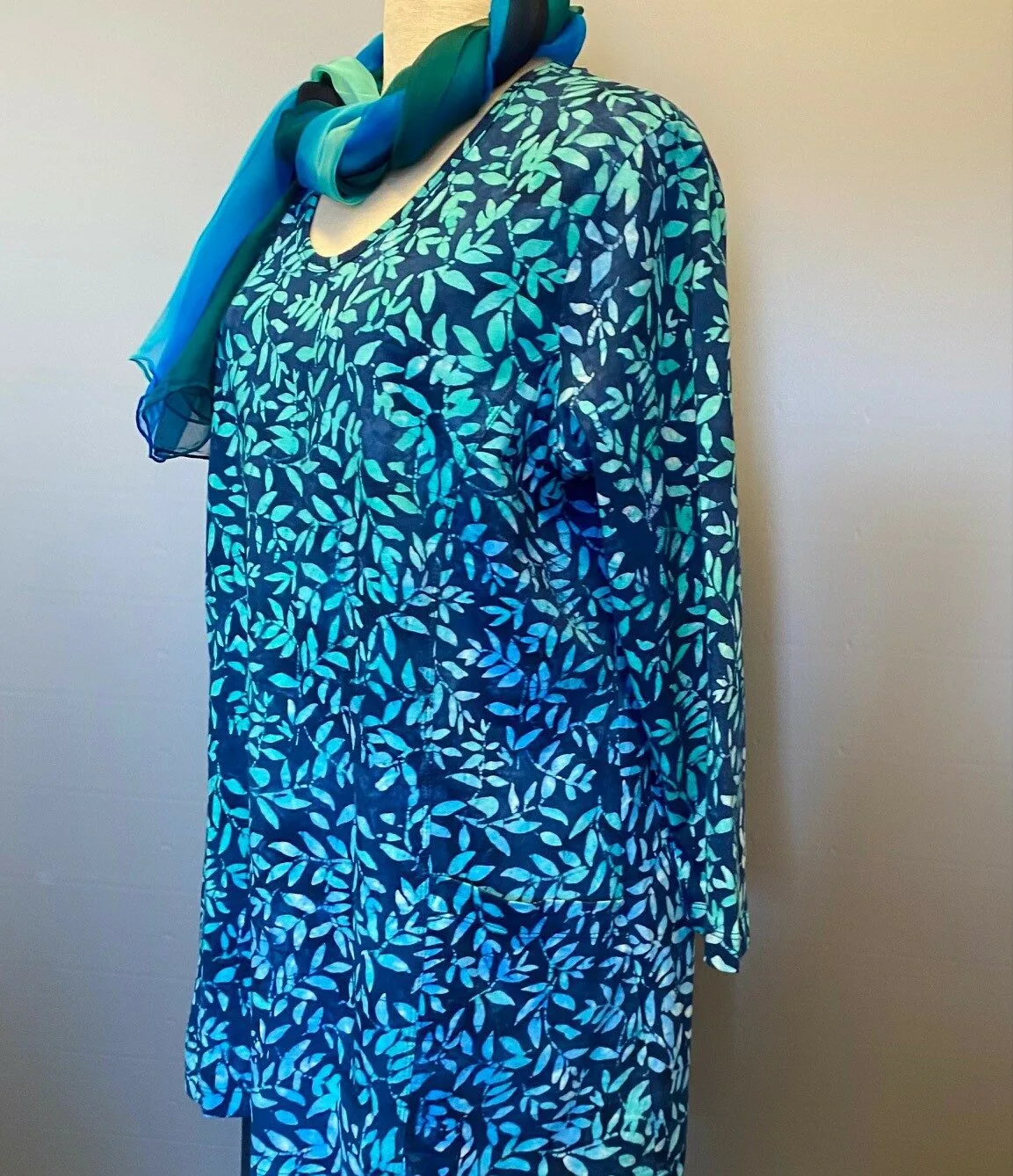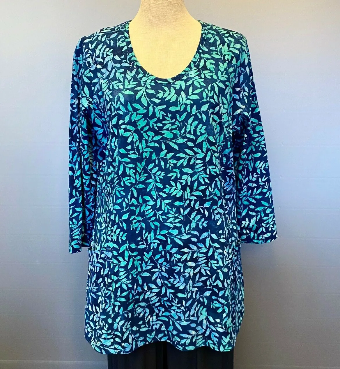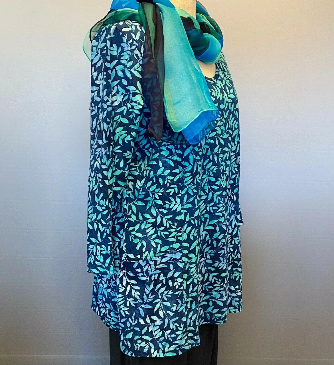 Batikbluse 007 A-facon Bomuld Jersey – Løv Blå