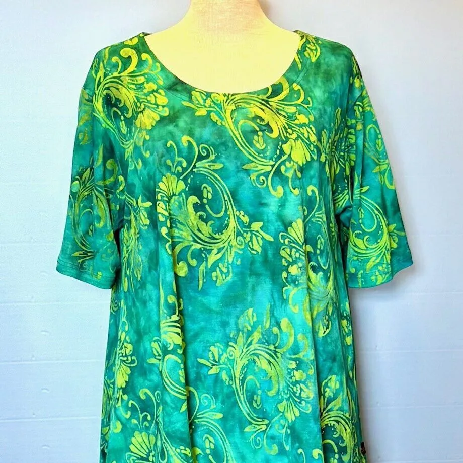 Klassisk bluse i A-facon af jersey håndtrykt med batik.