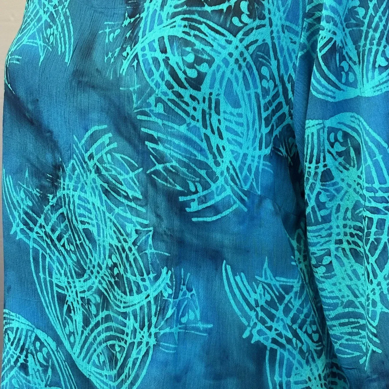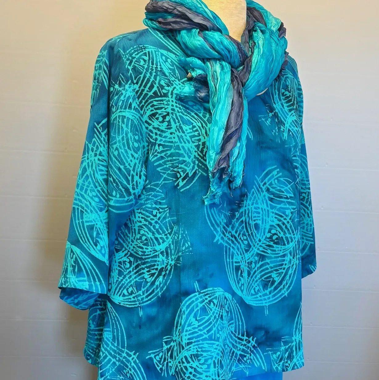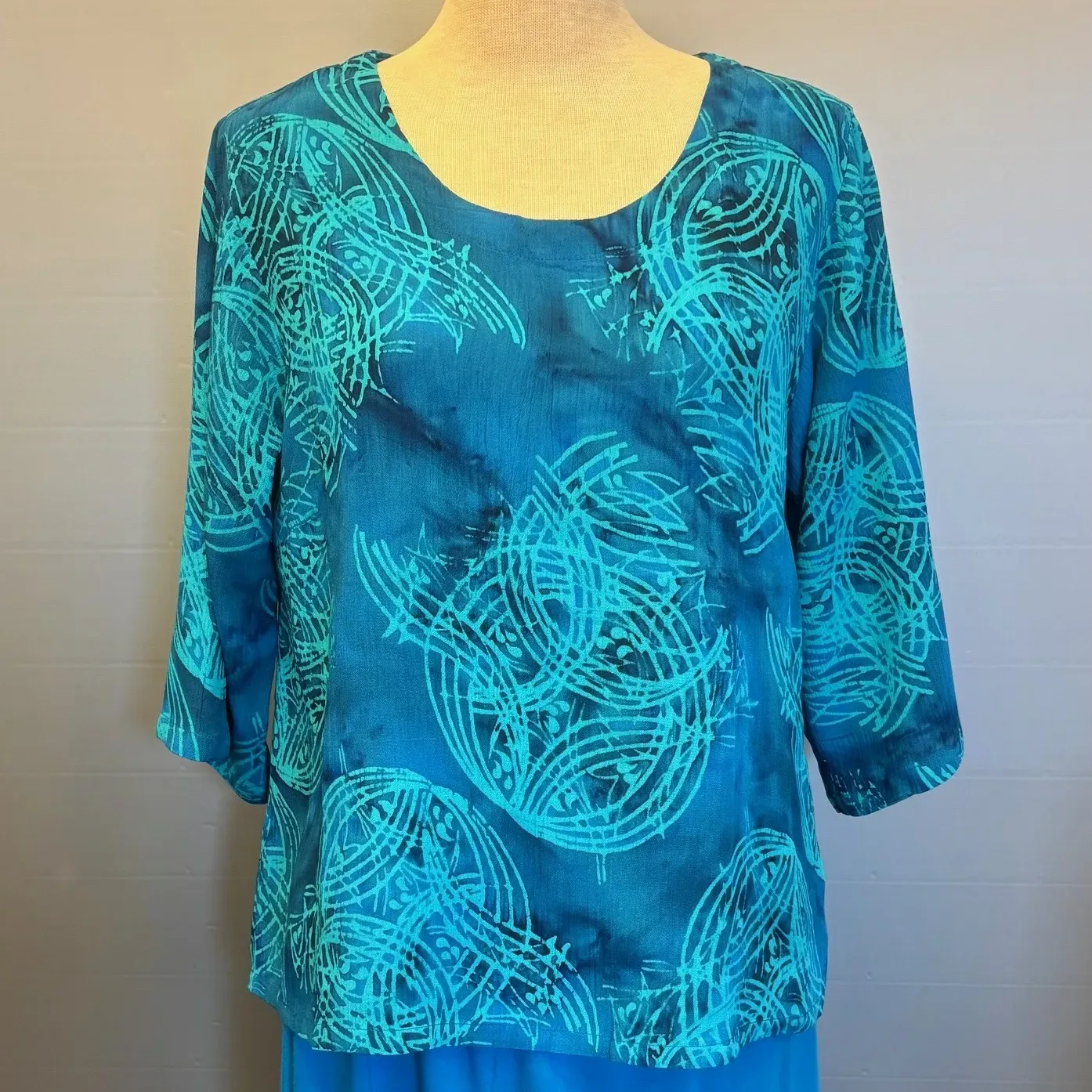 Fin lille bluse med moderat vidde og 3/4 lange ærmer i håndtrykt stof.