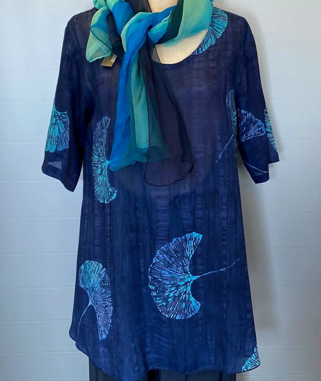 Batikbluse 141 A-facon – Gingko Midnatsblå
