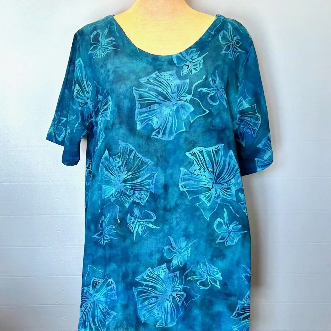 Batikfarvet blå tunika bluse i A-facon model Ulin