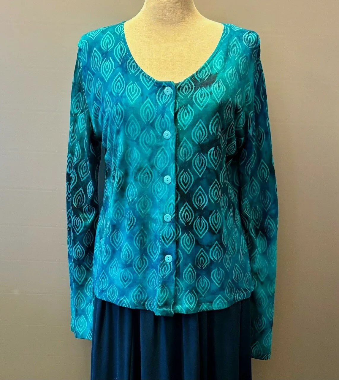 Batik Bluse Jersey med Knapper – Reno L/Æ Blå Turkis