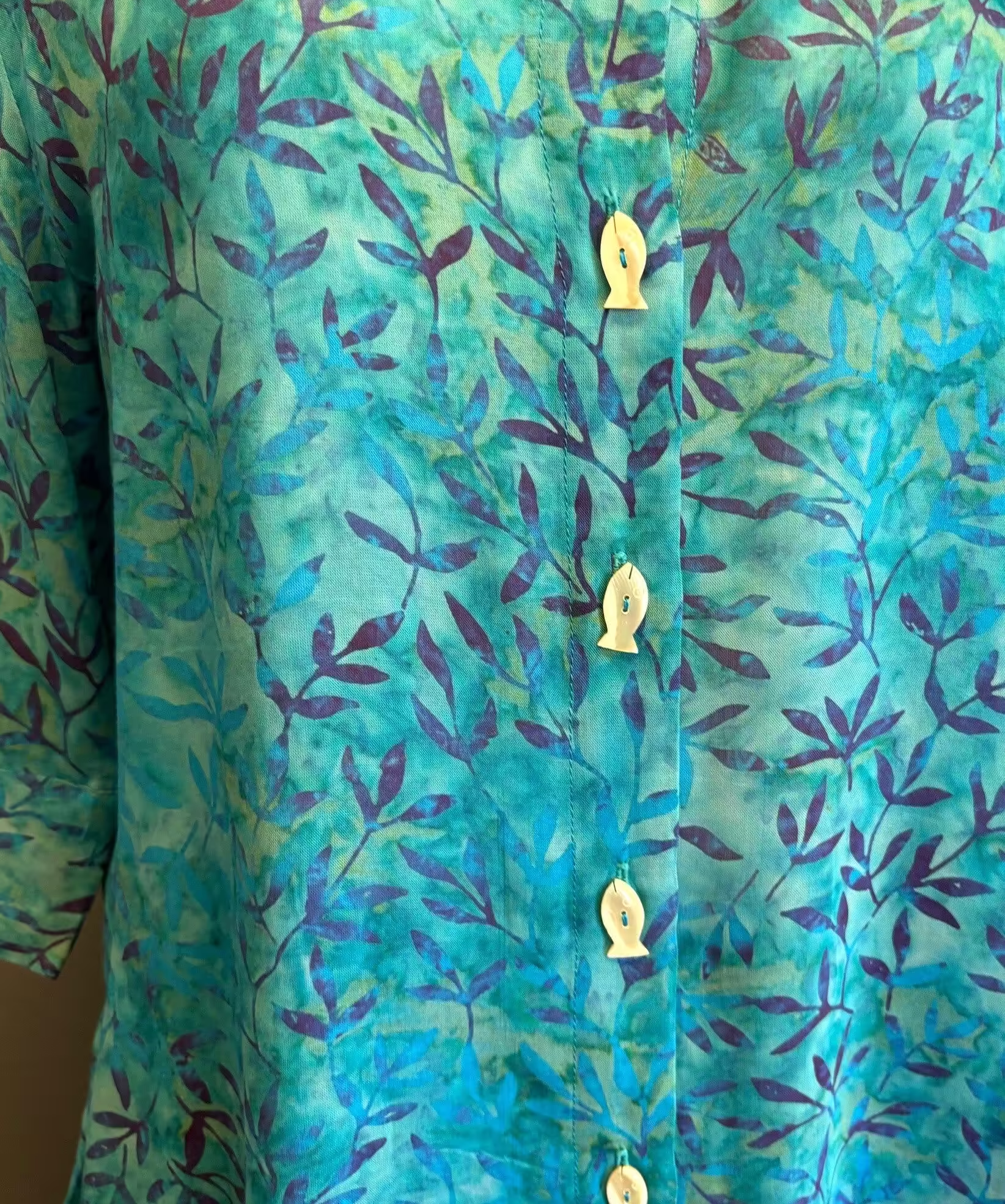 Batikbluse Model 125 med Knapper – Løv Petrol Violet