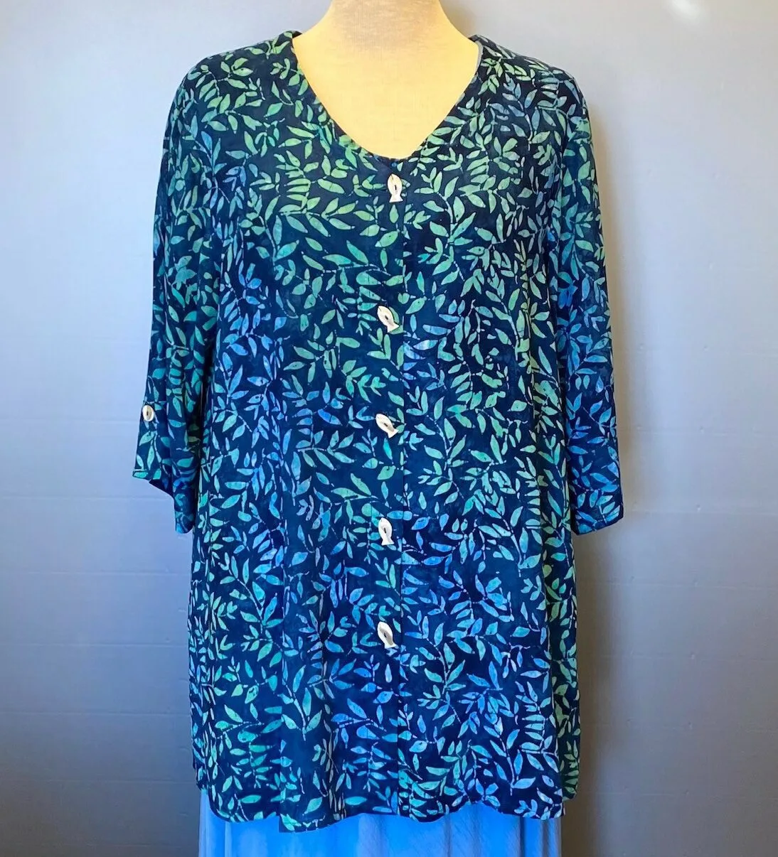 Skjortebluse 109 A-facon med Knapper – Løv Blå