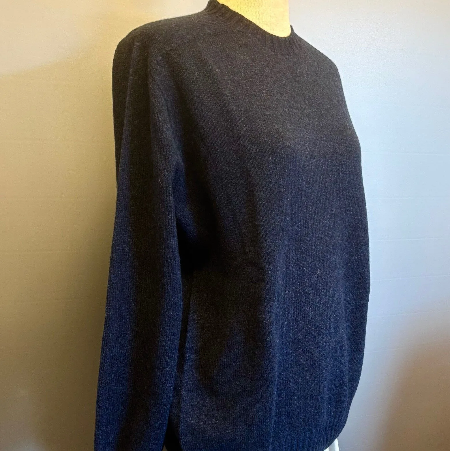 Trøjen fremstår umiddelbart ensfarvet, men ved nærmere øjesyn er der et let farvespil i garnet. Denne sweater er strikket i tynd, ekstra blød lammeuld. Garnet er ekstrablødt – super fine lambswool. Strikken er tynd og lækker, og velegnet til indendørs brug. F.eks. under en blazer. Garntykkelsen er 2 ply.