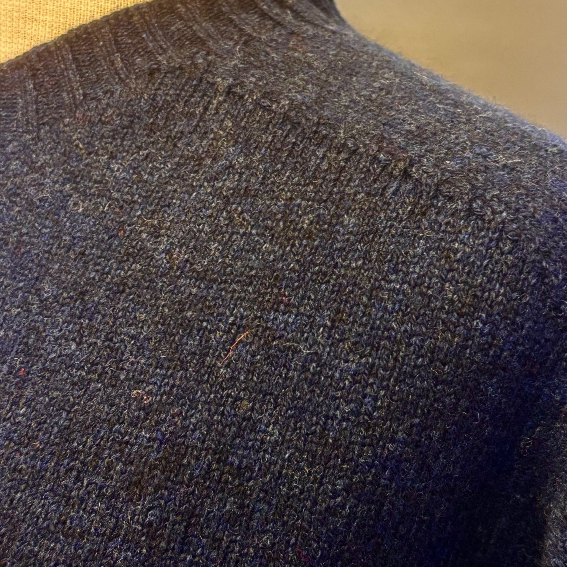 Striktrøjen er strikket i Skotland af det velrenommerede firma Harley, som er kendt for deres udsøgte kvalitetsgarn og nyfortolkede klassikere.